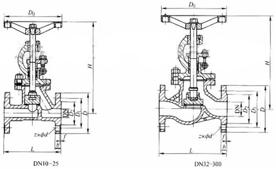 【J41W 型 PN16 鋼制截止閥產(chǎn)品外形及結構尺寸】