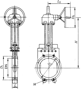 Z573X-6、Z573X-10 型鑄鐵錐齒輪傳動對夾式漿液閥:錐齒輪傳動、對夾式連接形式,明桿平行式剛性單閘板,閥座密封面材料為合成橡膠或聚四氟乙烯,公稱壓力 PN6~PN10,閥體材料為灰鑄鐵的平板閘閥(漿液閥)。