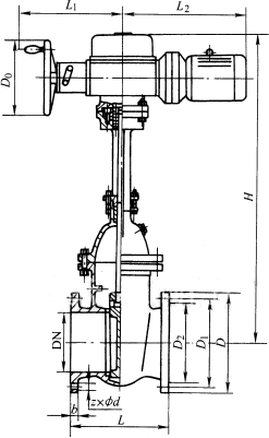 Z941T、Z941W、Z941H 型 PN16 鐵制電動楔式閘閥主要外形及結(jié)構(gòu)尺寸(mm)
