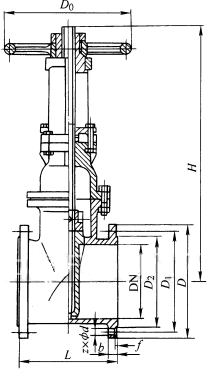 Z41X-10 型明桿軟密封閘閥主要外形及結(jié)構(gòu)尺寸(mm)
