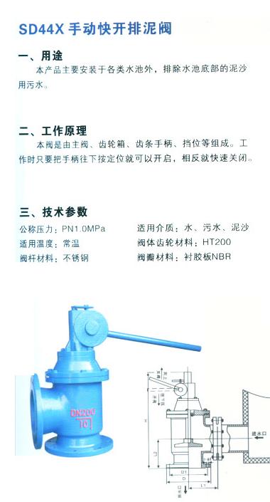 訂貨提供產(chǎn)品參數(shù):(SD44X手動快開排泥閥)