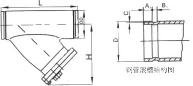 溝槽式卡箍Y型過濾器主要外形及結構尺寸(mm)