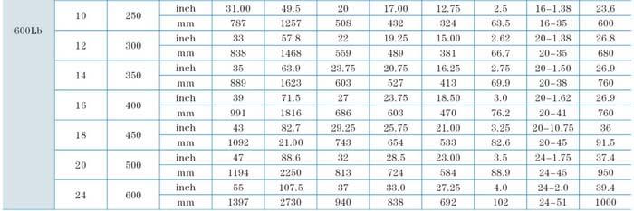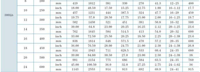 法蘭尺寸:ANSI B16.5