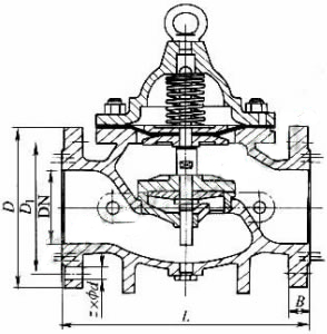 Y42X-10、Y42X-16 型水用減壓閥:法蘭連接形式、彈簧薄膜式結(jié)構(gòu)、密封面材料為丁腈橡膠銅合金、公稱壓力 PN10~PN16、閥體材料為灰鑄鐵或球墨鑄鐵的減壓閥。